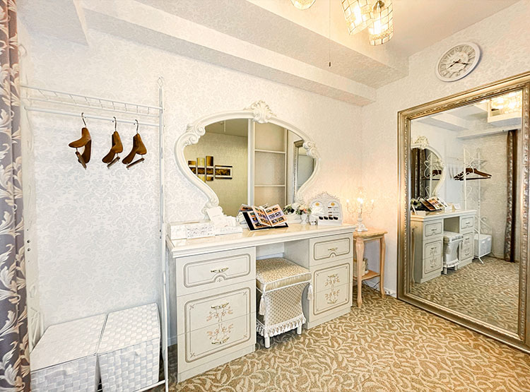 高級ホテルの一室をイメージした店内には、エレガントなドレッシングルームをご用意しています。